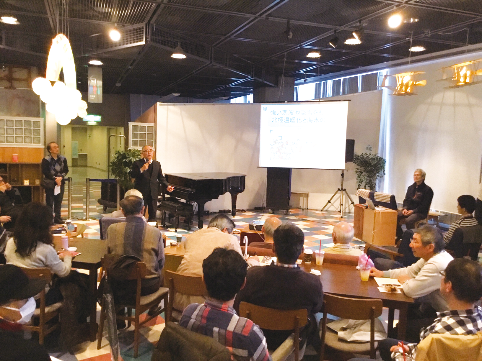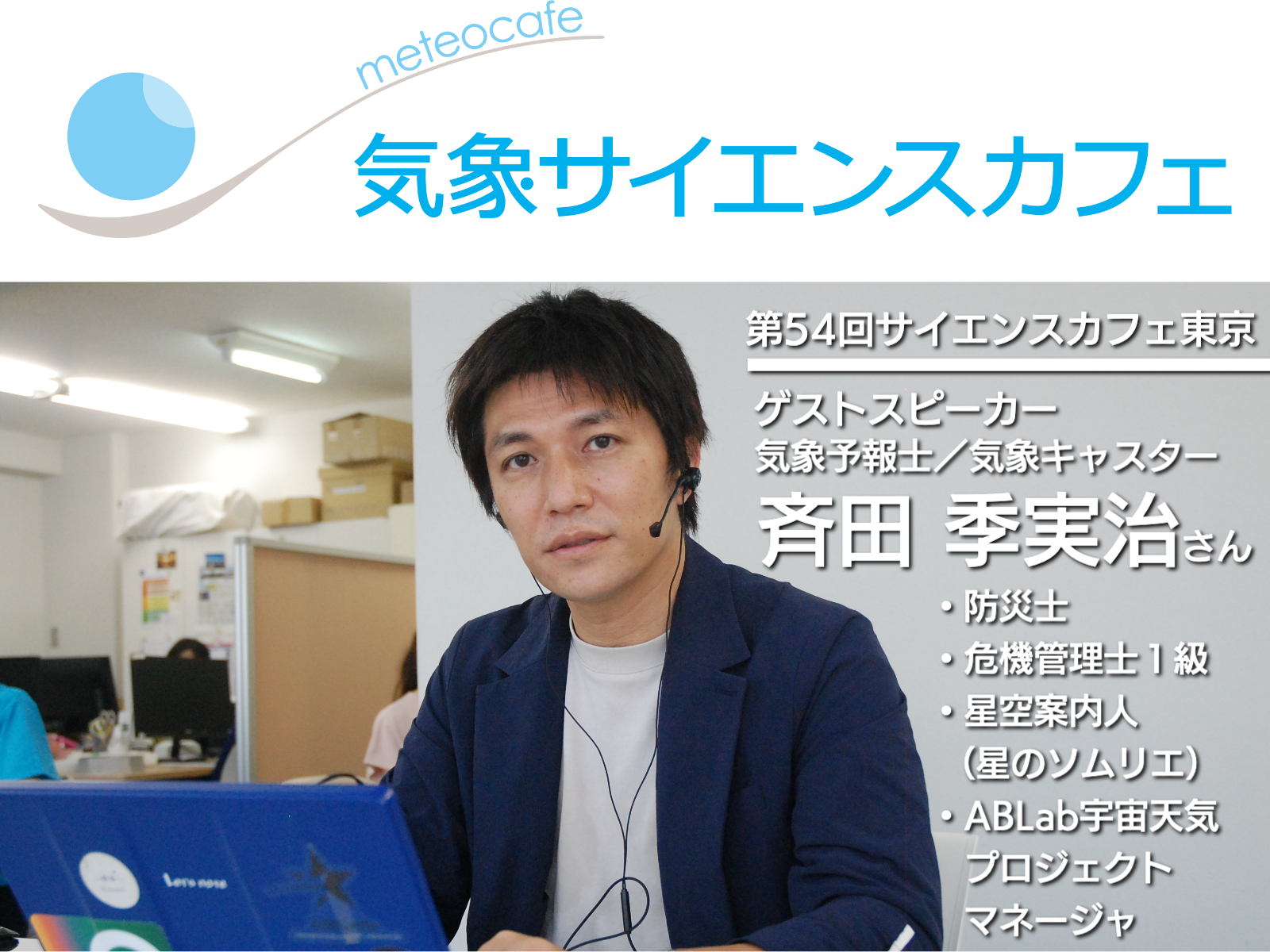 様々な気象の専門家をゲストに招き、コーヒーなどを片手にみなさんと和気あいあい語り合う場です。参加者のみなさんと意見と交わしたり討論したりという形で進行していきます。