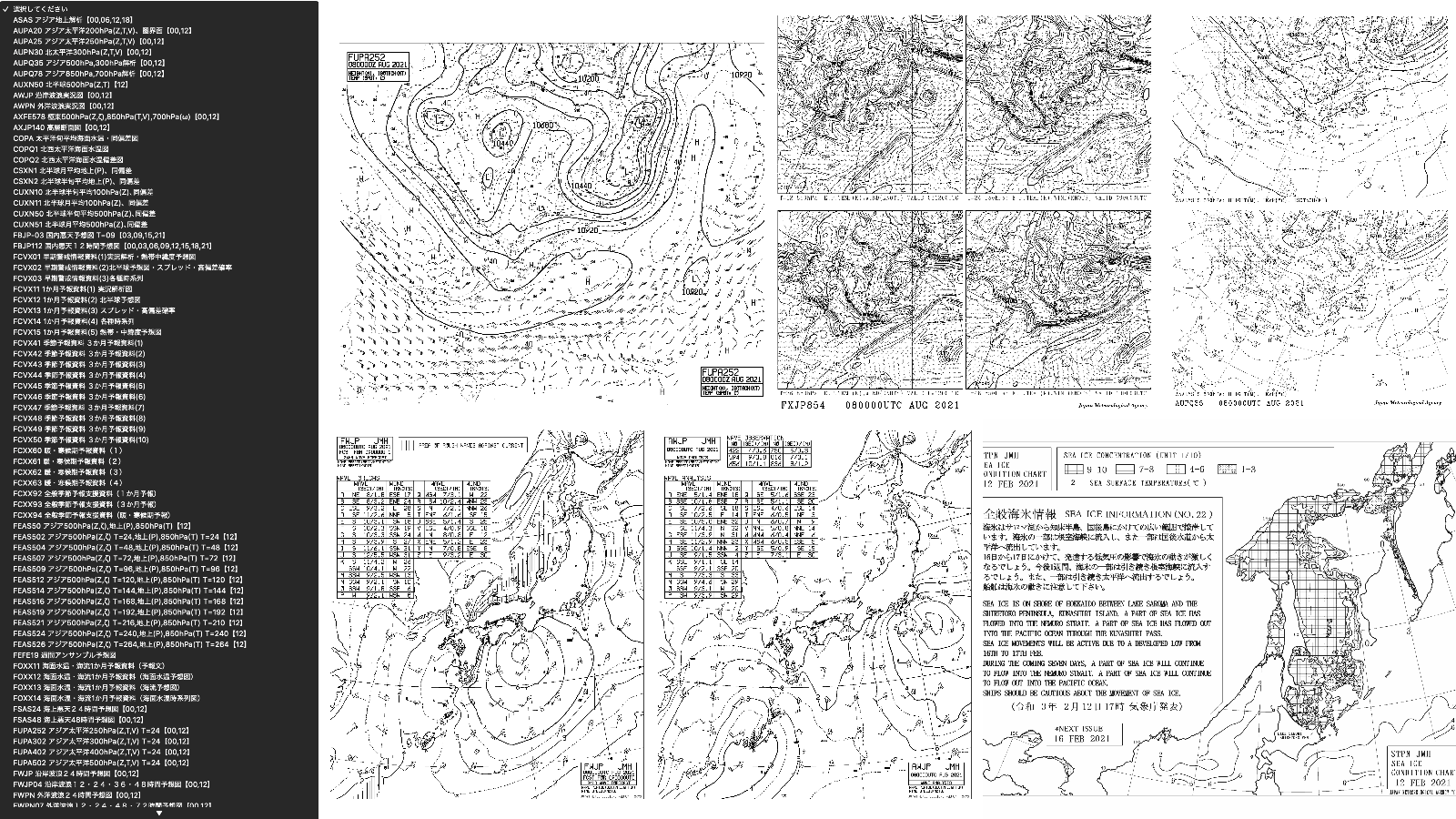 気象庁天気図全85種類(200ファイル/1日)を提供しています。